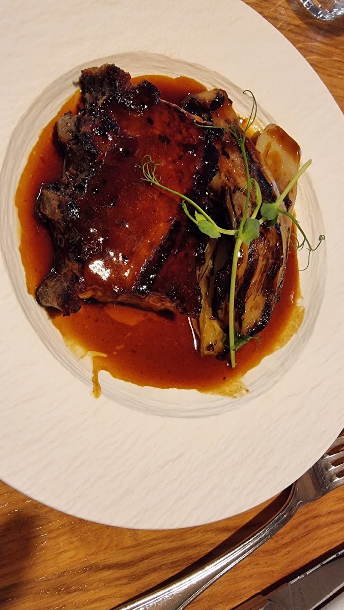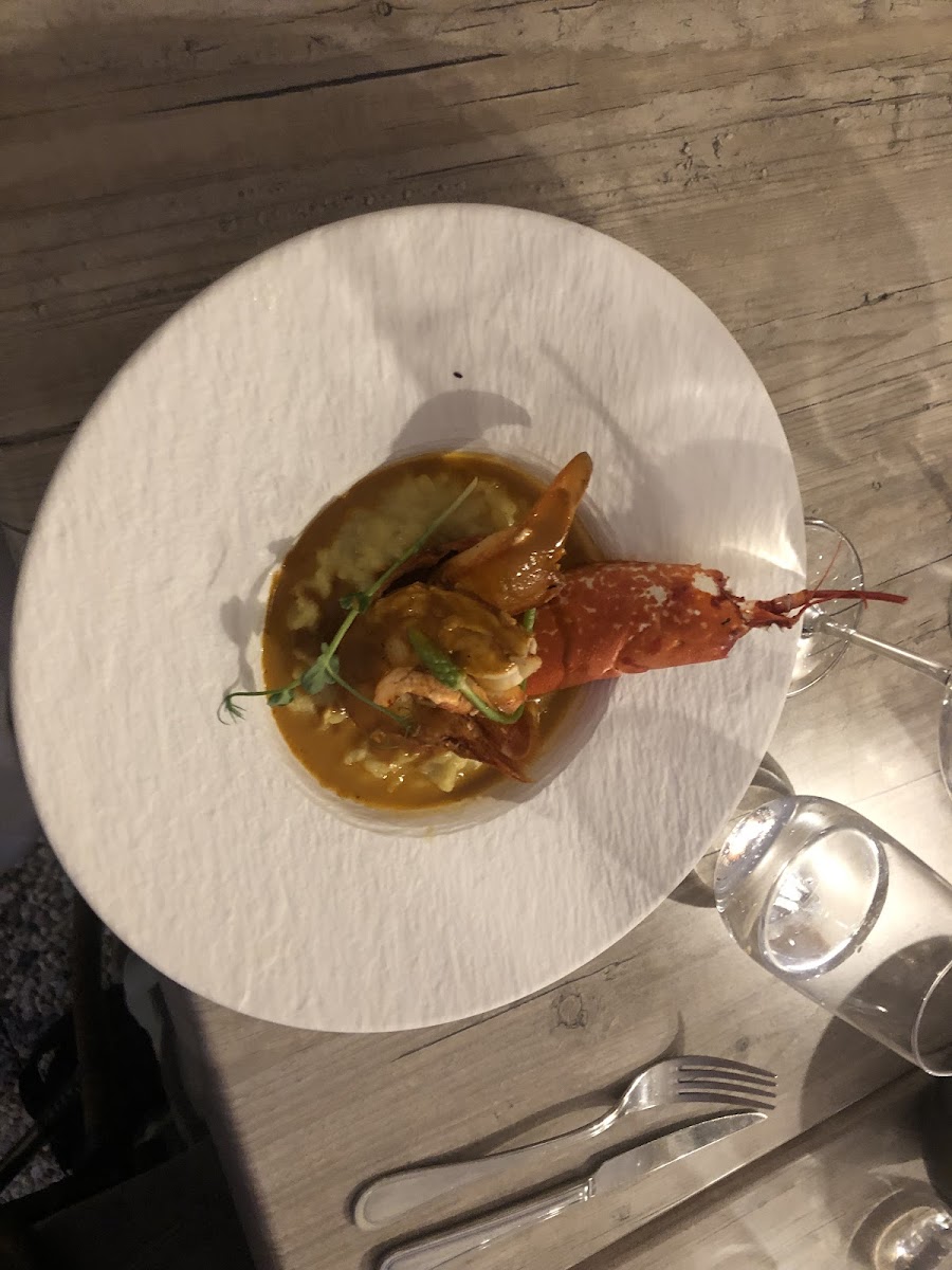 We are from New Zealand, and we stopped in the village overnight, on our way to Italy. Our airbnb hostess kindly reserved a table for us. Just as well as the restaurant was busy. The service was very good, and the flavour of the food was great. We had a starter, main and a glass of the recommended food matched wine. Cost €105. I/we had ceviche for starter and the black pig for main, my wife had the lamb. Delicious.