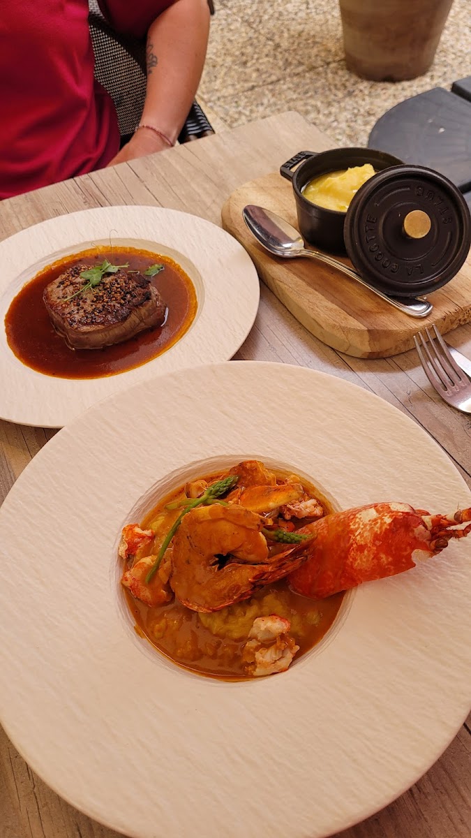A late review because I forgot I shared it on my Instagram but not here! Me, my boyfriend, and his parents all had a solid experience in a nice, casual vibe. The place itself isn't fine dining, but the food is great quality, and we enjoyed ourselves from the main course to dessert. We were offered complementary amuse-bouche of veal tartar which just melted right in the mouth. It was creamy and herby, and the meat itself was fresh. Everyone else took the veal steak with polenta while I got the steak with bearnaise sauce, fries, and salad. Cooked just right, zero complaints from any of us. The highlight, however, was the dessert. The family was enamored by the walnut and chocolate tart with vanilla ice cream. I loved my pain perdu with ice cream and caramel. There might have been a bit too much caramel, but otherwise, the bread itself was delicious and spiced with a good amount of cinnamon - just the way I like it. They have fantastic outdoor seating, and the fresh summer night air made it all the more worth it after a sweltering daytime heat. Bourron Marlotte is a peaceful little town, and we got to appreciate its quaint and countryside atmosphere.